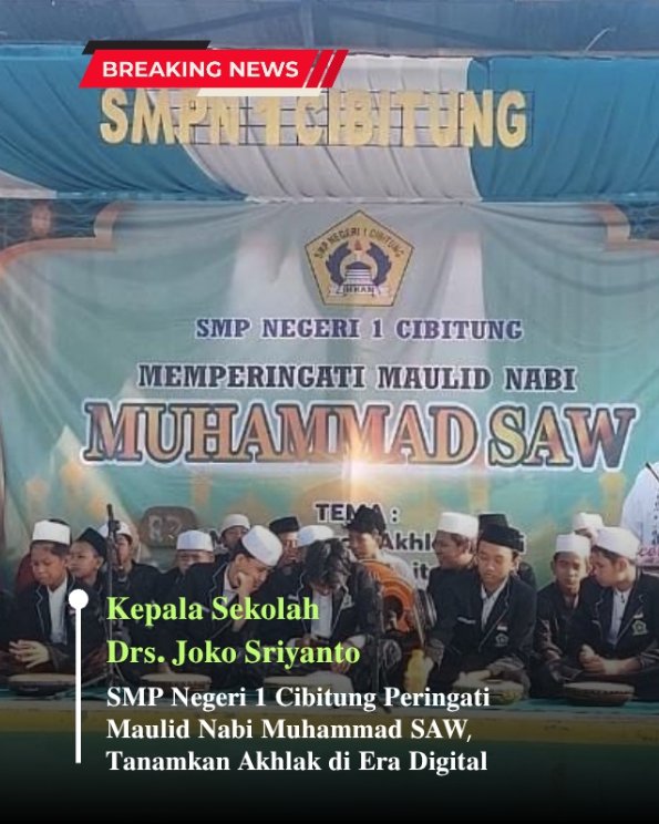 โDalam rangka memperingati Maulid Nabi Muhammad SAW, SMP Negeri 1 Cibitung menggelar kegiatan keagamaan yang penuh makna di lingkungan sekolah pada Jumat ( 17/10/2025 ). Acara ini dipimpin langsung oleh Kepala Sekolah Drs. Joko, dengan mengusung tema โMembumikan Akhlak Nabi dalam Era Digital.โ