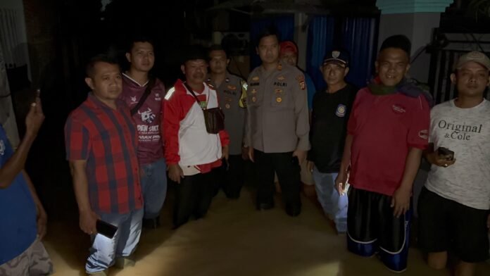 Mengetahui kondisi tersebut, Kapolsek Cikarang Barat AKP Tri Baskoro Bintang Wijaya, S.I.K., M.H., didampingi perangkat desa serta personel Polsek, langsung turun ke lokasi untuk mengecek kondisi banjir sekaligus memberikan bantuan sembako dan air mineral kepada warga yang terdampak.