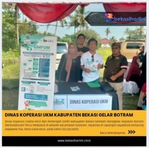 Dinas Koperasi Usaha Kecil dan Menengah (UKM) Kabupaten Bekasi kembali menggelar kegiatan Botram (Berkolaborasi Terus Melayani) di wilayah Kecamatan Sukatani, tepatnya di Lapangan Sepakbola Kampung Jagawana Tua, Desa Sukarukun, pada Sabtu (11/10/2025).