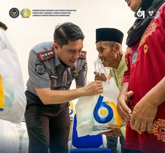 KARAWANG | BEKASIHARIINI.CLICK | Dalam rangka memperingati Hari Bakti Pemasyarakatan ke-61, Lembaga Pemasyarakatan (Lapas) Kelas IIA Karawang menyalurkan 148 paket bantuan sosial kepada masyarakat sekitar dan keluarga warga binaan, Senin (14/4/2025).