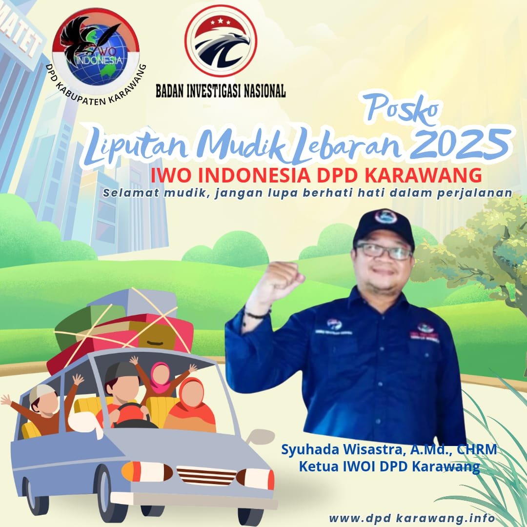KARAWANG, | BEKASIHARIINI.CLICK | – Ikatan Wartawan Online Indonesia (IWOI) Dewan Pimpinan Daerah (DPD) Karawang menyatakan kesiapannya untuk mengawal dan meliput arus mudik Lebaran 1446 H/2025. Organisasi yang dipimpin oleh Syuhada Wisastra, A.Md, CHRM, ini berkomitmen untuk memberikan informasi faktual dan akurat demi kelancaran serta keamanan para pemudik.