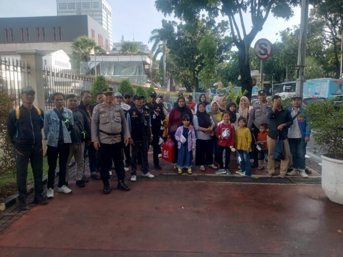 Keberangkatan massa dari Polsek Tambelang menggunakan tujuh unit bus yang disediakan oleh PO. Warga Baru. Masing-masing bus telah dilengkapi dengan sopir dan pengawalan dari petugas kepolisian untuk menjaga keamanan dan kelancaran perjalanan. Konsentrasi pengawalan difokuskan untuk menghadapi situasi di lapangan, terutama saat memasuki area Jakarta.