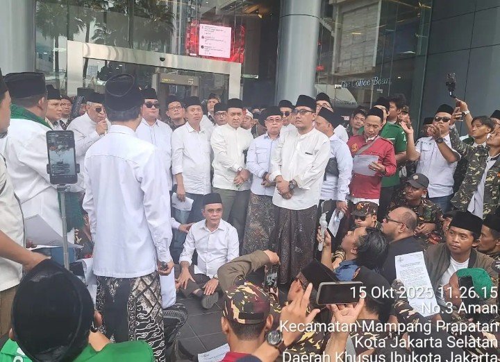 Ribuan peserta aksi melaksanakan kegiatan dengan tertib dan santun. PWNU DKI Jakarta menolak ada orasi atau permohanan maaf dari pihak Trans7 dalam momen aksi. (Red)