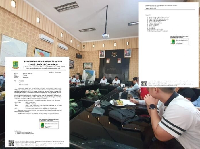 KARAWANG | BEKASIHARIINI.CLICK | Dinas Lingkungan Hidup (DLH) Kabupaten Karawang mengundang empat kawasan industri, Balai Besar Wilayah Sungai (BBWS) Citarum, serta Dinas PUPR dalam rapat pembahasan kondisi Sungai Kalikalapa, Senin (22/4/2025).