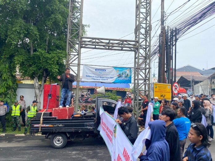 Cikarang Barat, | BEKASIHARIINI.CLICK | – Ketua Umum Ormas CAKRA Bekasi, H. Mahmudin—yang akrab disapa H. Amuy—turun langsung memimpin aksi di depan PT Wahana Duta Jaya RUCIKA, Kamis (17/4/2025). Aksi yang berlangsung di kawasan Kampung Cibitung Kaum, Kecamatan Cikarang Barat, Kabupaten Bekasi itu digelar sebagai bentuk kekecewaan atas dugaan wanprestasi yang dilakukan perusahaan terhadap kesepakatan yang telah ditandatangani bersama.