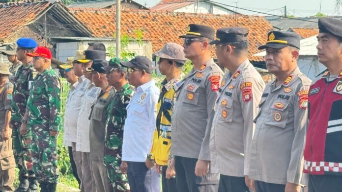 Cikarang Barat, | BEKASIHARIINI.CLICK | – Personil Gabungan di siagakan dalam pengamanan kegiatan penertiban bangunan liar yang di tertibkan oleh Satpol PP Kabupaten Bekasi, di sepanjang bantaran kali CBL Desa Kali Jaya, Rabu (16/4/25).