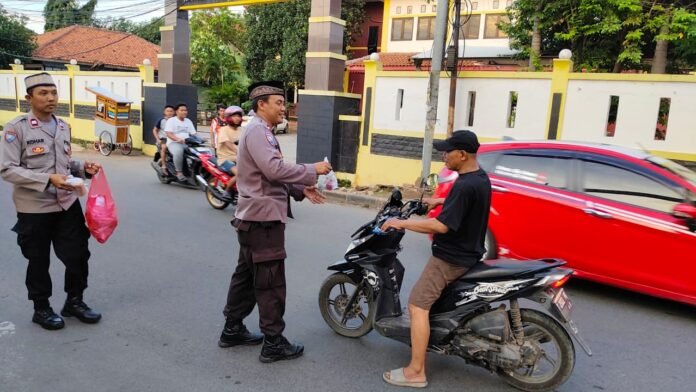 Cikarang Barat, | BEKASIHARIINI.CLICK | – Dalam suasana Ramadhan 1446 H, Polsek Cikarang Barat terus rutin melaksanakan Giat pembagian takjil kepada pengguna jalan dan masyarakat menjelang berbuka puasa di Jl. Raya Taman Aster Kel. Telagaasih Kec. Cikarang Barat , Minggu (23/03/25).